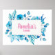 Azul, cor d'água, floreamento floral, decoração de quarto, sinal de porta