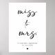 Elevem o vosso decor de chá de panela com o Sinal de Escrita Manuscrita Preta da Senhora Moderna. Este cartaz apresenta um roteiro manuscrito em um design preto e branco minimalista e adiciona um toque elegante e moderno ao seu chá de panela. É a maneira perfeita de celebrar a transição de "Miss" para "Sra." e dar o tom para um evento na moda e memorável.