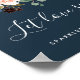 Projetado para combinar com a nossa coleção de casamentos do Radiant Bloom, este elegante cartaz botânico convida convidados para o casamento para celebrar o feliz casal com um faxineiro. Personalize com duas linhas de texto personalizado no script de caligrafia e na letra serif tradicional (mostrada com "Let Love Sparkle: sparkler at [time]"), com uma borda superior de flores de cor d'água de tom joalharia e com uma folhagem botânica verde em um rico fundo azul marinho.
