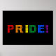 Design com o texto "Orgulho!" em cores LGBT (lésbica, gay, bissexual e transexual), bandeira do orgulho do arco-íris, orgulho gay design de amor do arco-íris em fundo preto