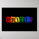 Design com o texto "Orgulho!" em cores LGBT (lésbica, gay, bissexual e transexual), bandeira do orgulho do arco-íris, orgulho gay design de amor do arco-íris em fundo preto