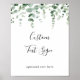 Este sinal de texto personalizado de eucalipto minimalista elegante é perfeito para um casamento moderno ou chá de noiva. O design apresenta ramos e folhas de eucalipto botânico elegante desenhado à mão com aquarela.