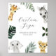 Sinal de texto personalizado com animais da selva e folhas verdes. Personalize com seu texto para personalizar. Coleção correspondente no compro Adore Paper Co. Zazzle.