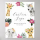 Sinal de texto personalizado com animais da selva e folhas verdes. Personalize com seu texto. Coleção correspondente na loja Zazzle da Adore Paper Co.