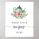 Este lindo sinal de receitas de chá de noiva apresenta um bule de chá em aquarela e um buquê floral rosa. Este é o enfeite perfeito para combinar com o tema da sua festa de chá!