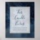 Este sinal de vela que arde com céu celestial e moldura é perfeito para o seu casamento encantado sob as estrelas. O céu azul-marinho escuro em aquarela, pontilhado de estrelas prateadas, definirá o tom para o seu casamento boho ao ar livre à noite. Personalize-o como desejar ou mantenha-o como está. Certifique-se de verificar o resto da coleção para ajudar a completar o tema do seu casamento!