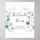 Este sinal de vela queimando eucalipto verde de verão é perfeito para um casamento simples. O design apresenta belas folhas de eucalipto verde pintadas à mão em aquarela, inspirando charme natural.