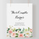 Este sinal de velas de folhagem verde com floral simples é perfeito para um casamento tropical. O design apresenta lindas rosas pintadas à mão em branco, rosa e rosa claro embutidas em folhagem verde, inspirando beleza artística.