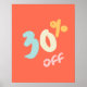Uma placa brilhante e atraente "30% fora da venda" em laranja, adequada para boutiques e lojas de varejo.