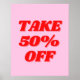 Poster Sinal de Venda Rosa, Sinal de 50% de Desvenda