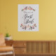 O fundo branco puro da madeira rustica, o belo texto caligráfico e as impressionantes florais de aquarelas (pelo artista extremamente talentoso, SmallHouseBigPony) dão um belo sinal.
