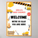 Bebê sob sinal de jogo de Chá de fraldas de construção