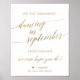 Essa elegante caligrafia dançando em setembro é perfeita para um casamento outono. A design neutra apresenta uma poster minimalista decorada com tipografia falsa de ouro romântica e caprichosa. A placa diz: "Você se lembra? Dançando em setembro depois desta noite, esperamos que você faça!" Nota: Este design não apresenta folha de ouro real. É um gráfico de alta qualidade feito para se parecer com folhas de ouro.