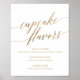 Este elegante sinal de sabor de cupcake de caligrafia em ouro é perfeito para um casamento simples. A design neutra apresenta uma poster minimalista decorada com tipografia falsa de ouro romântica e caprichosa. Nota: Este design não apresenta folha de ouro real. É um gráfico de alta qualidade feito para se parecer com folhas de ouro.