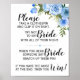 Poster Sinal floral azul para chá de noiva com jogo de pr
