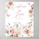 Poster Sinal Personalizado de Chá de fraldas Floral Rosa