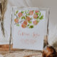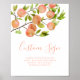 Sinalização personalizada do chá de fraldas de tema de pêssego. Ilustração aquosa de pêssegos em um galho de árvore.