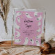 Sinal personalizado de chá de fraldas do tema do halloween bonito. Ilustração de fantasmas bonitos com estrelas. O fundo é rosa.