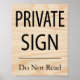 Você está cansado de pessoas invadirem seu espaço pessoal? Diga-lhes que essas são suas palavras e não é da sua conta. Este sinal diz "Sinal Privado". Não leia." Este sinal humorístico é algo de que você precisa para se livrar de invadir espiões literários. Vá em frente e diga pessoas para MYOB.