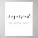 Cartaz de mesa reservada para casamento personalizado com design preto e branco moderno minimalista.