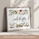 Projetado para combinar com a nossa coleção de casamento Rustic Bloom, este elegante sinal botânico permite que os hóspedes saibam onde largar as suas cartas e presentes. Personalize com uma linha de texto personalizado na letra de script de caligrafia (mostrada com "Cartões e presentes"), enquadrado por flores de aquarela e verde em tons de outono rústicos.