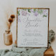 Este sinal de bebida rusticado é perfeito para um casamento de primavera ou verão. A romântica e elegante design floral apresenta flores lilás roxas de aquarela com uma sensação de jardim boho country.
