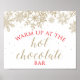 Calma no Bar de Chocolate Quente Winter Onederland Snowflake Sign com flocos de neve dourados e texto vermelho.