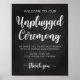 Sinal de casamento de cerimônia desplugada no design de caligrafia moderno em fundo de caligrafia. Excelente para muitas outras ocasiões como festas de noivado, festas de aniversário e chás de panela. Para um olhar coeso, visite a minha loja para ver as coleções das nossas placas de casamento. Contacte-me para obter informações de design personalizadas e pedidos de produto.
