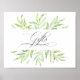 Este sinal de mesa de presente coordena-se com a "Coleção de Casamentos Greenery Laurel Wreath" com galhos de coroa de louros em tons de aquarela de texto verde e elegante para presentes.