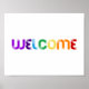 Bem-vindo: uma mensagem acolhedora e inclusiva escrita em cores do arco-íris. Uma tomada original na bandeira do arco-íris!
