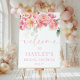 Este sinal de boas-vindas do chá de panela apresenta um design floral cor-de-rosa pincelado. O cabeçalho do script é uma imagem que não pode ser editada. Todo o outro texto é totalmente editável. Para personalização mais avançada deste design, basta selecionar o botão "Personalizar" acima.