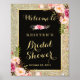 Sinal de boas-vindas do chá de panela Placa Floral Dourada Glitter Sparkles (1) Para mais personalização, clique no link "personalizar mais" e use nossa ferramenta design para modificar esse modelo. (2) Se precisar de ajuda ou itens correspondentes, entre em contato comigo.