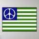 A bandeira azul, branca e verde, com um símbolo de paz no lugar das estrelas, diz que Paz deve fazer parte de salvar o planeta porque a guerra é uma força destrutiva que nos afeta a nós e ao planeta. Espalhe a mensagem de que acabar com a guerra salvará a terra.