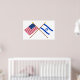 As bandeiras suavemente balançando nos Estados Unidos e seu "outro" lugar favorito em polos cruzados são uma excelente maneira de mostrar suas afeições ou afiliações. Seja a sua casa atual ou ancestral, algum lugar que você visitou ou gostaria de visitar, ou só porque você gosta dessa bandeira, esta poster é para você! Personalize o seu poster, adicionando o seu próprio texto ou alterando a cor de fundo! Veja nossos outros produtos com este design! O vexilófilo oferece bandeiras de todos os tipos — nações, estados, territórios — e esperamos que você encontre a bandeira que está procurando aqui. No entanto, se não o encontrar, por favor, envie-nos uma nota! Apraz-nos receber pedidos!