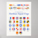 Poster que retrata os sinais marítimos internacionais utilizados pelos navios no mar: números e letras e o seu significado. Sinalizadores de sinais marítimos e pennentes podem ser usados para soletrar mensagens curtas, ou mais comumente, usadas individualmente ou em combinação para designar significados especiais.
