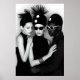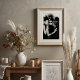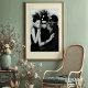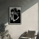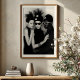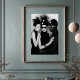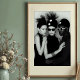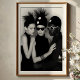 Mergulhe na harmonia impressionante desta impressão de arte branca e negra, uma representação cativante da moda de vanguarda e da unidade artística. Esta poderosa imagem apresenta três figuras meticulosamente estilhaçadas, criando um quadro convincente de elegância moderna. A mulher central, com seus misteriosos óculos escuros e um chapéu preto único adornada com pontos brancos e picos radiantes, expele um ar de sofisticação legal. Ela é flanqueada por uma mulher de olhos fechados na contemplação serena, mostrando um penteado elegante e traje preto minimalista, e um homem com pele escura distinta e óculos de sol branco icônico, contribuindo para o ousado contraste do conjunto. Suas mãos se entrelaçam, sugerindo uma poderosa conexão e sinergia dentro de sua visão estilística compartilhada. Com alto contraste monocromático contra um pano de fundo sutil da cinza, cada detalhe intrincado, desde o chapéu escultural até a pulseira texturizada, é destacado com precisão gráfica. Perfeito para espaços modernos, estúdios de moda, ou qualquer decoração que busque um toque de elegância suja, estilo único e uma poderosa narrativa visual.