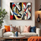 Uma dança vibrante de linhas, formas e cores entrelaçadas em perfeita harmonia. Essa abstrato revela movimento e profundidade, convidando o olho a explorar cada detalhe oculto em sua complexidade geométrica.