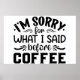 Poster Sinto muito pelo que disse antes do café