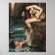 Esta reprodução de uma trabalho de arte de 1900 óleo-na-canvas de John William Waterhouse apresenta uma sirene com cabelos longos e auburn segurando uma lira, começando por um marinheiro condenado.