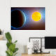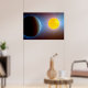 A concepção deste artista retrata o sistema de estrelas Kepler-10, localizado a cerca de 560 anos-luz perto das constelações de Cygnus e Lyra. Kepler descobriu dois planetas ao redor desta estrela. Kepler-10b é, até agora, o menor exoplaneta rochoso conhecido, ou planeta fora do nosso sistema solar (ponto escuro contra o sol amarelo). Kepler-10c é o objeto de primeiro plano maior.