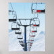 Fotografia de uma fileira de elevadores de cadeira num parque de esqui nevado