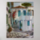 De uma pintura original em óleos de canvas por Yvonne Ayoub, mostrando a arquitetura típica da ilha grega de Skiathos