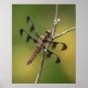 Imagem magnífica e simples de uma Dragonfly (Common Whitetail Skimmer Female ... nota; somente o adulto tem uma cauda branca) com um fundo amarelo e verde lindamente contrastante.