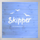 Poster de navegação divertida com a palavra Skipper escrito em uma legal fonte branca. Fundo brilhante brilhante de efeito de madeira azul e gaivotas brancas voando acima. Excelente para salas temáticas marítimas e náuticas, clubes de barcos e bares de praia. Cuidado para coordenar produtos dentro da minha loja. Por favor, pergunte se você gostaria de ver este design em outros produtos, ou se você tem um design, você gostaria que eu criasse.