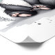 Um gambá bonito, preto e branco, com um toque de cor verde-menta na fita.