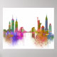Skyline Rainbow Bright de Nova York, por Fab Funky. Apresenta marcas de Nova Iorque famosas em estilo aquarela usando um arco-íris de cores.
