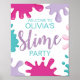 Sinal de boas-vindas de festa de aniversário de lodo em rosa, roxo e turquesa. Bem-vindos à festa fina! Sinal de boas-vindas de aniversário personalizado