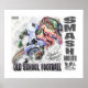 Smash Mouth, jogador de dinossauro exibe intensidade e ação no Campo de Futebol Dino da Antiga Escola. Outro Poster Legal da antiga série Dino Escola do Mudge Studio.