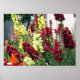 Brancos e coloridos (Antirrinum majus 'Rocket Mix') realmente se destacam. As cores incluem tonalidades de bronze, limão, orquídea, rosa, vermelha, rosa, branca e amarela. Observe o lírio do tigre laranja no canto inferior esquerdo.