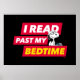 Confira este gráfico ousado que diz: "Eu li além da hora de dormir", mostrando Snoopy vestindo os óculos de leitura com sua pilha de livros.
